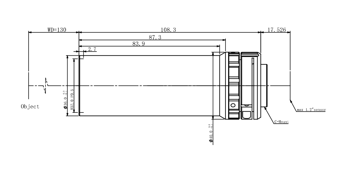 Model NO. WWT121-085-130 Image Circle Diameter (Φmm) 20.0(1.2")