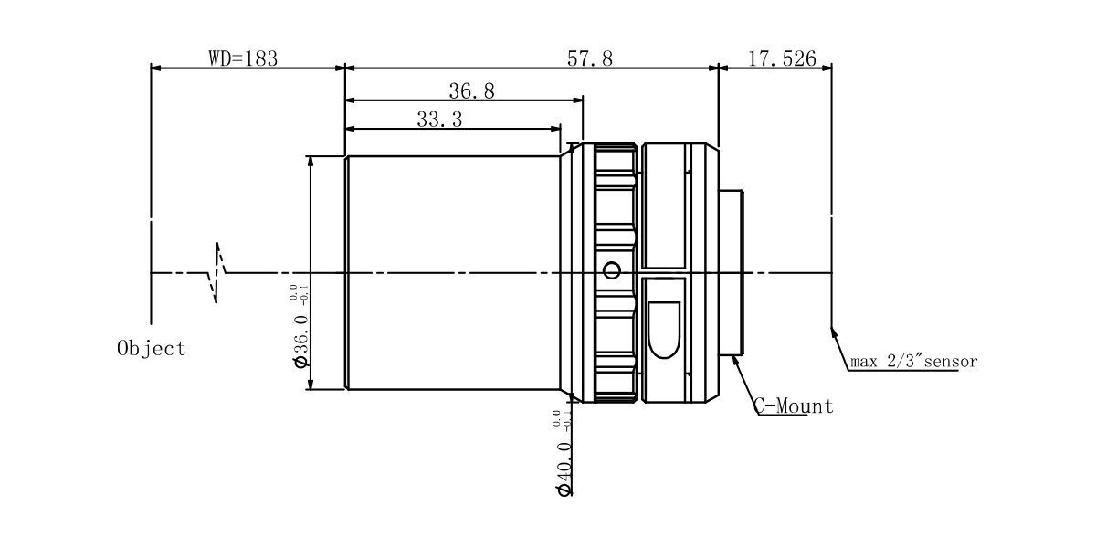 Model NO. WWT230-03-183 Image Circle Diameter (Φmm) 11.0(2/3")