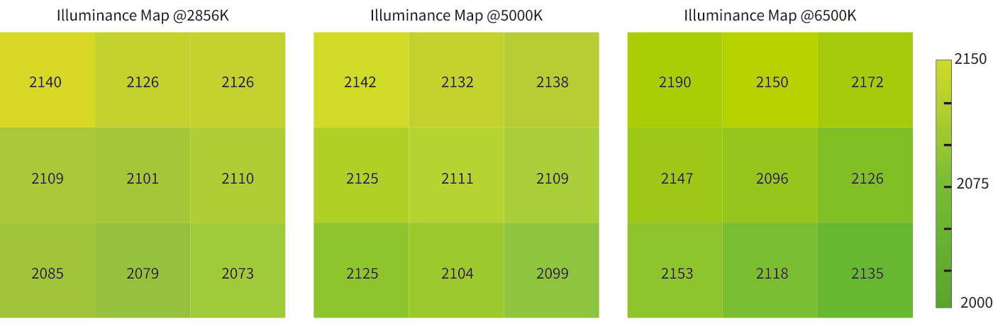 Understanding the heat map: The visualization shows how evenly the light spreads across the illuminated area. Consistent colors indicate uniform lighting, which is crucial for professional applications requiring accurate color reproduction.