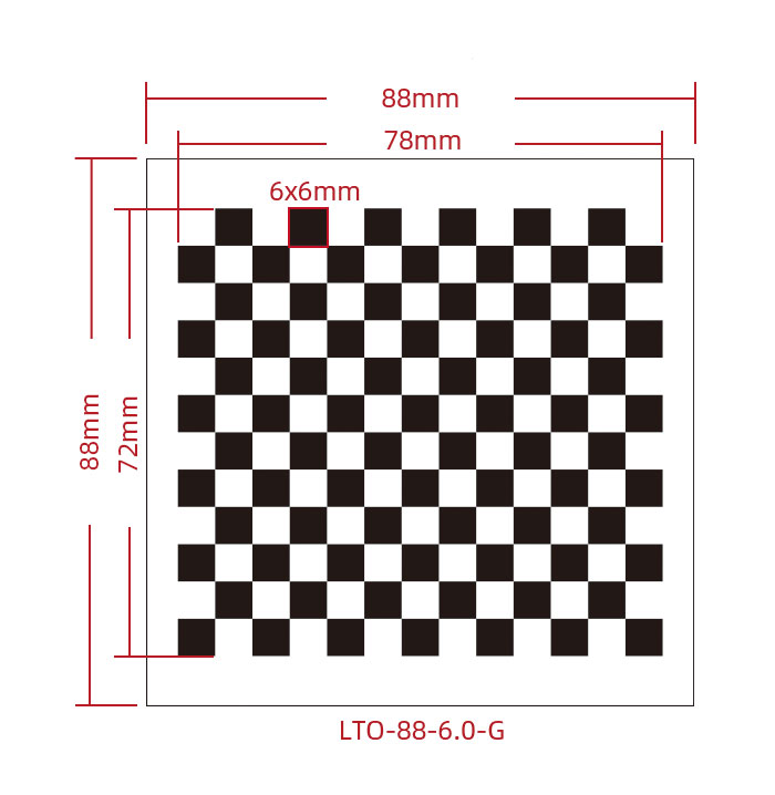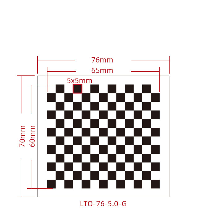 Standard Model NO. Substrate Material Coating Type Overall Target Size Active Pattern Area Checkerboard Pattern Array Feature Accuracy