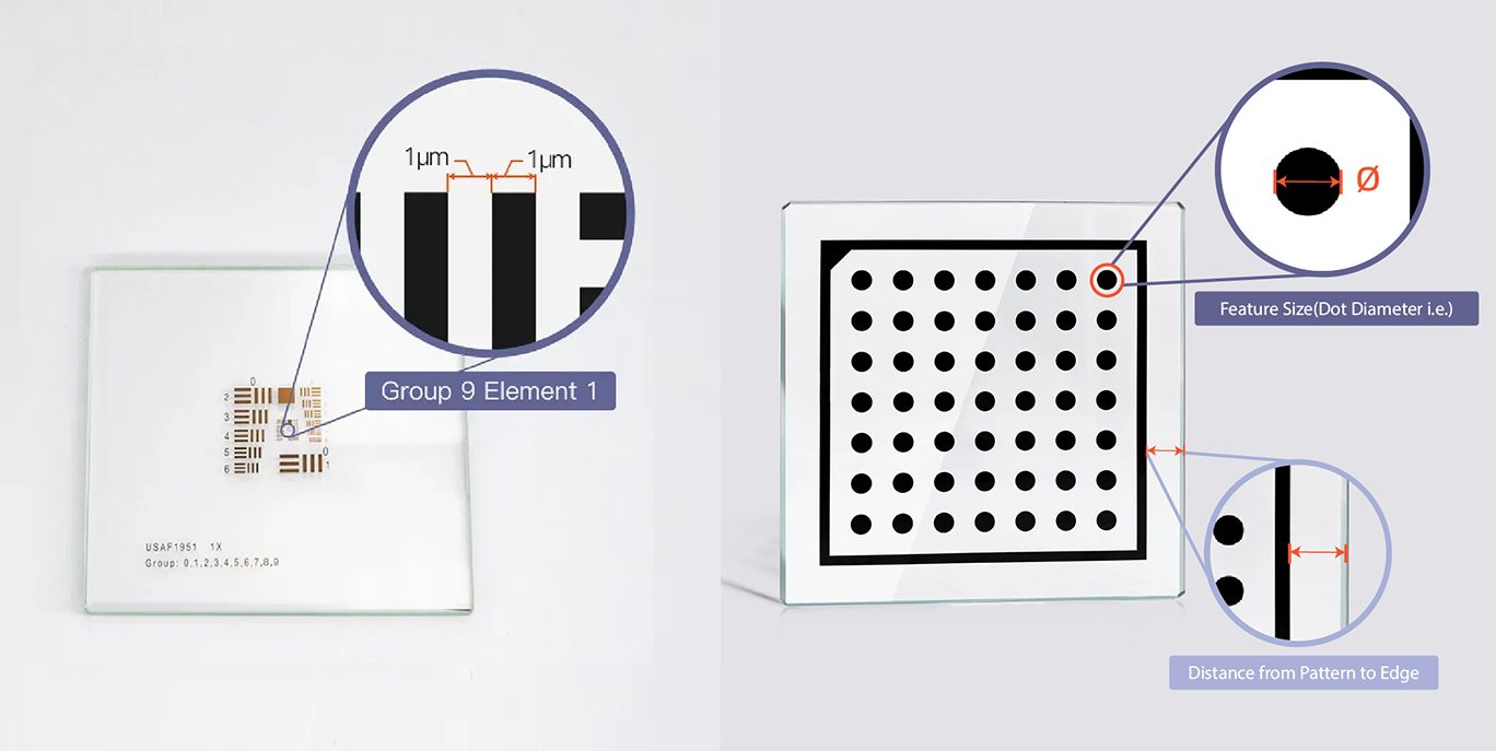 Minimum Feature Size Accuracy(Square/Checker Size/Line Width/Dot) 1μm/0.7μm Transmission